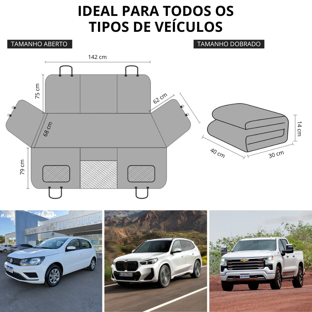 Ele transforma o banco traseiro da sua caminhonete ou carro em um espaço seguro, confortável e protegido, tanto para o pet quanto para o veículo.