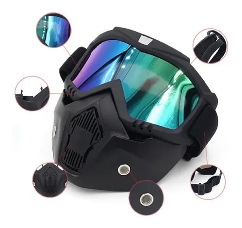 Foi projetado para proteger seus olhos, nariz, boca e sistema respiratório com máxima eficiência e praticidade, além de possuir lentes polarizadas com proteção UVA400, para proteger sua visão dos raios solares que são extremamente prejudiciais para seus olhos.